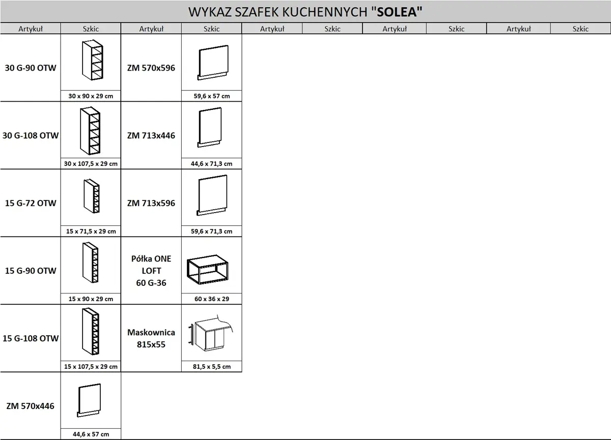 Wysokość szafek dolnych: 82 cm (bez nóżek regulowanych)