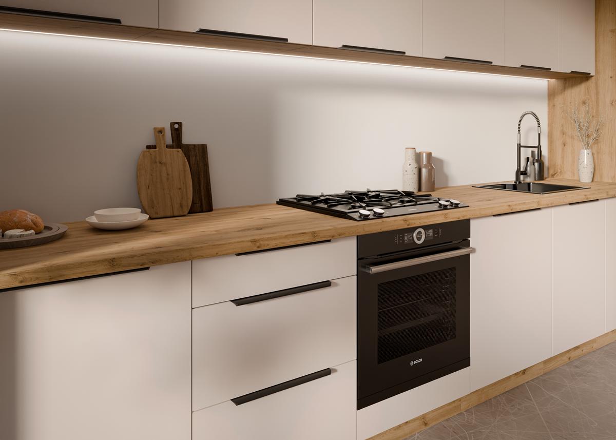 Ergonomiczny układ z miejscem na piekarnik, płytę i zlew