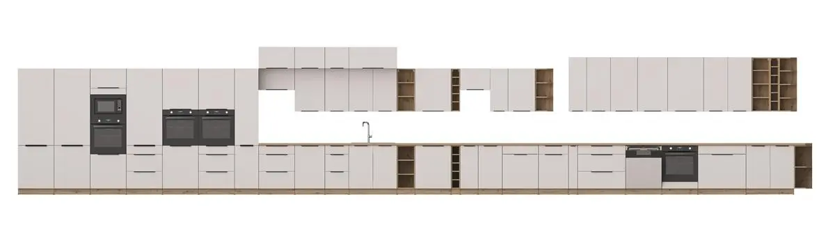 Zestaw mebli kuchennych SOLEA 390 cm – fronty kaszmir / korpus dąb artisan