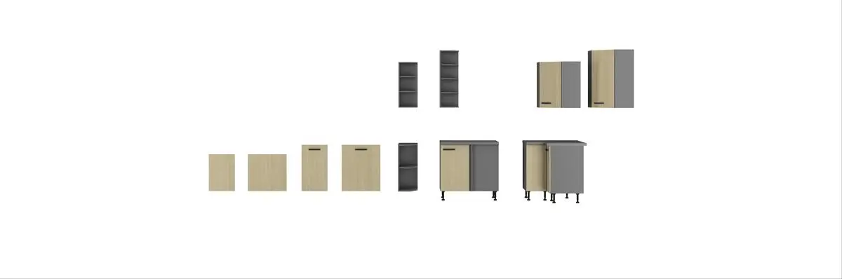 Zaprojektuj spójną kuchnię z gotowych elementów – wybierz szafki, słupki i fronty z tej samej kolekcji: