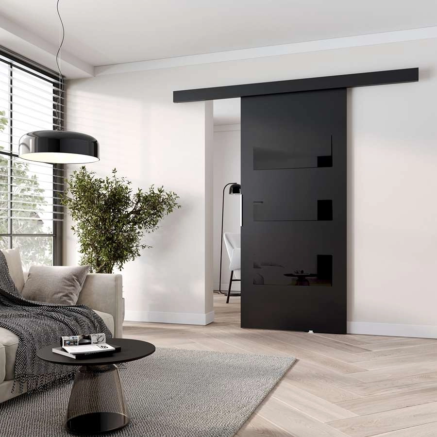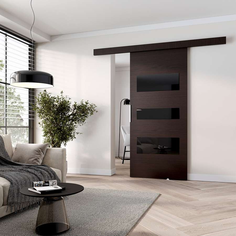 - 3 szyby lacobell w kolorze czarnym – elegancka szyba lacobel, która dodaje drzwiom nowoczesności i klasy. Lacobel jest materiałem odpornym na uszkodzenia, łatwym w utrzymaniu czystości i wprowadza subtelny akcent do każdego wnętrza.