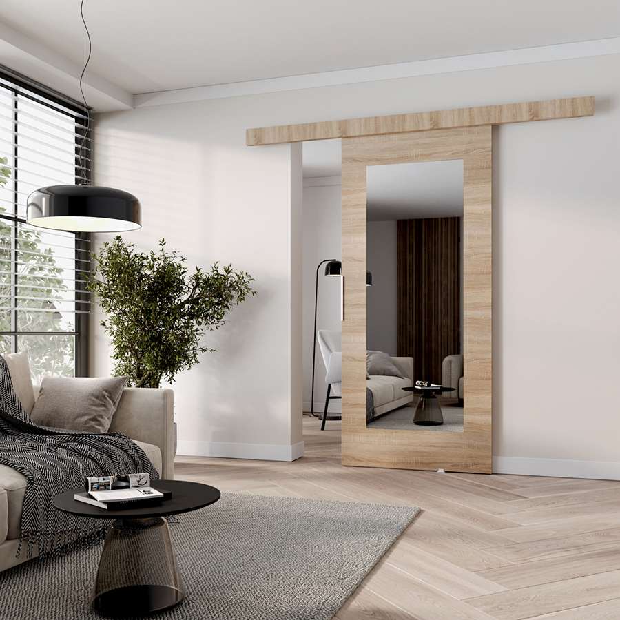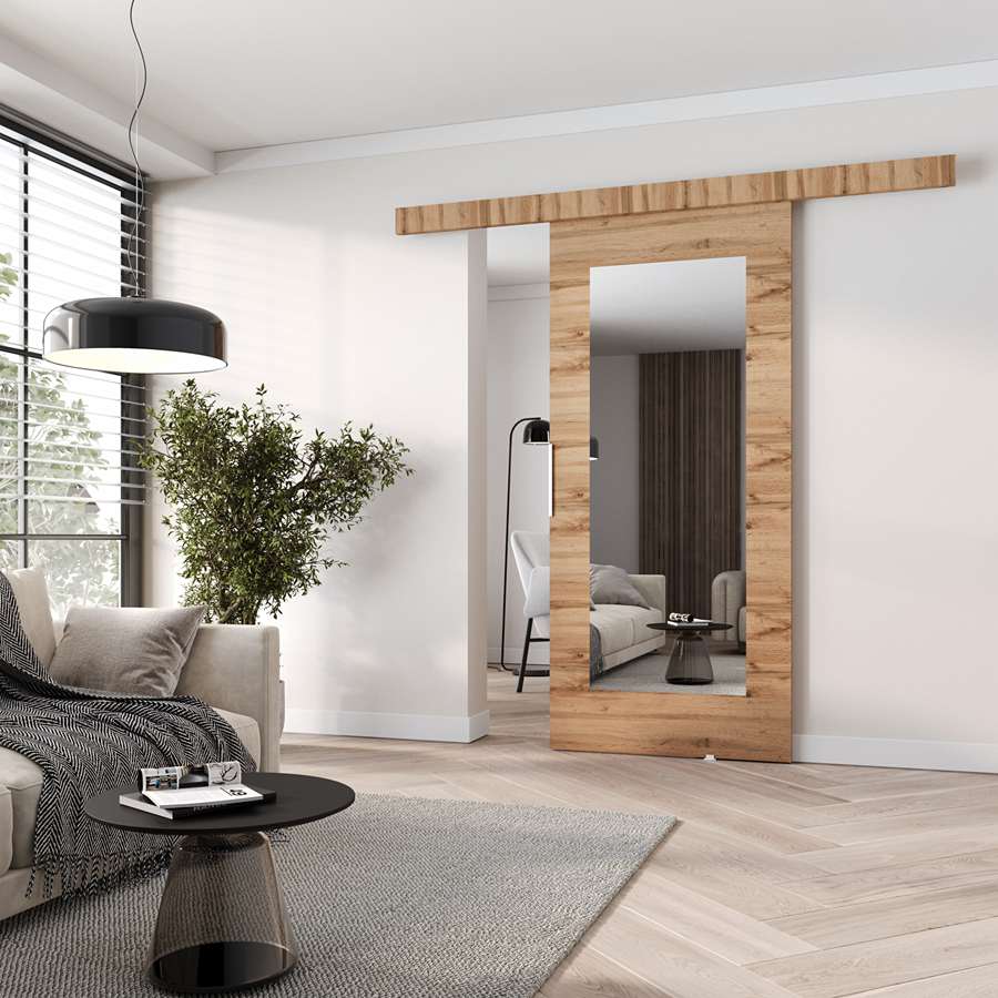 Drzwi przesuwne MATI I100-106 cm to nowoczesne rozwiązanie, które łączy elegancki wygląd z wysoką funkcjonalnością. Dzięki uniwersalnemu montażowi, masz możliwość wyboru strony montażu, co daje Ci pełną swobodę przy aranżacji przestrzeni. Drzwi wyposażono w solidny, łożyskowany system przesuwny LAGUNA, który zapewnia płynne i ciche działanie. Aluminiowy uchwyt o długości 29,5 cm nadaje drzwiom nowoczesnego charakteru, a lustro wprowadza elegancki akcent, który nadaje drzwiom wyjątkowego wyglądu.