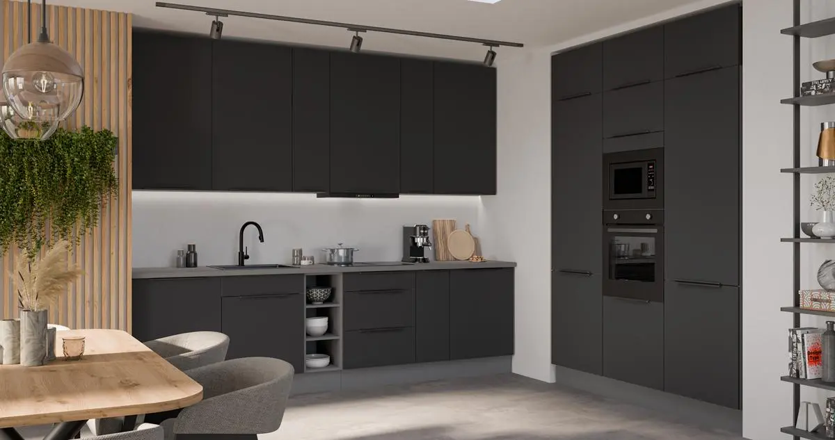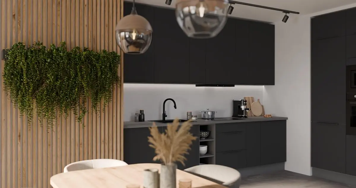 Nowoczesne połączenie frontu matowego i korpusu drewnianego