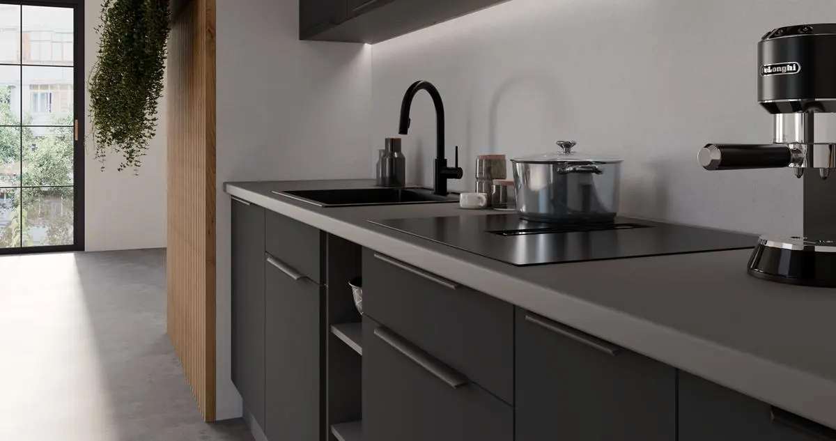 Fronty: czarny mat, biały mat, Sandgrau (piaskowy szary mat), Aquamarine (matowy turkus), Grafit matowy