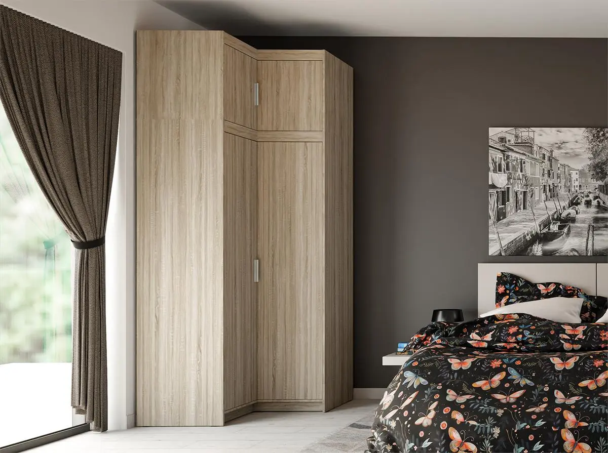 Nadstawka została zaprojektowana jako idealne uzupełnienie szaf ELENA narożnych, tworząc spójny zestaw mebli i zwiększając pojemność bez zajmowania dodatkowego miejsca w pokoju.