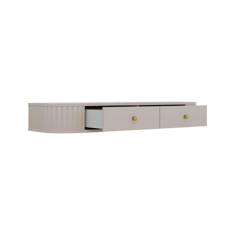 Model wyposażony jest w dwie praktyczne szuflady, które zapewniają wygodne miejsce na kosmetyki, biżuterię lub drobne akcesoria. Szuflady osadzono na prowadnicach dolnego montażu QUADRO z cichym domykiem i wysuwem 3/4, co gwarantuje komfort i wysoką kulturę użytkowania.