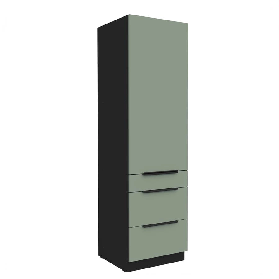 Słupek kuchenny 60 DKS-210 3S-1F ARIANA AQUAMARINE ANTYFINGER / DĄB ARTISAN to pojemny i funkcjonalny element wysokiej zabudowy kuchennej. Doskonale sprawdzi się jako miejsce na przechowywanie naczyń, sprzętów lub produktów spożywczych. Trzy szuflady w dolnej części oraz pojemna przestrzeń za frontem pozwalają utrzymać idealny porządek w kuchni.