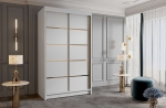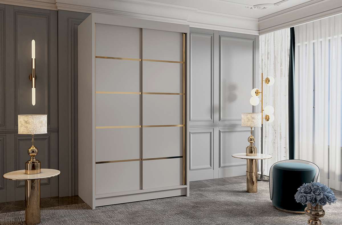 Dzięki systemowi drzwi przesuwnych, szafa nie zajmuje dużo miejsca, a jednocześnie umożliwia łatwe i wygodne dostęp do zawartości. Zastosowanie wysokiej klasy prowadnic gwarantuje płynną i cichą pracę mechanizmu przesuwu. Drzwi wykonane z hartowanego szkła zwiększają walory estetyczne szafy, a także pozwalają na eksponowanie jej zawartości.