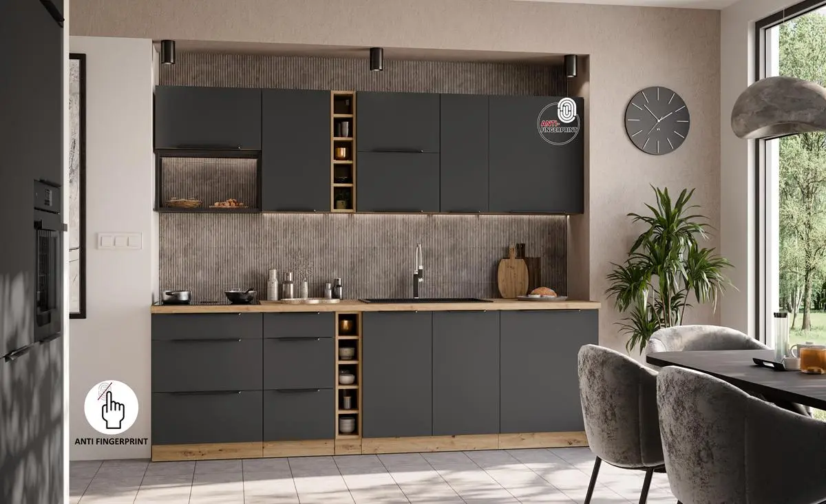 Wybierz ARIANA GRAFIT/ARTISAN i stwórz kuchnię, która łączy nowoczesny design, naturalne wykończenie oraz wysoką funkcjonalność.