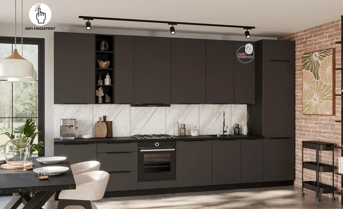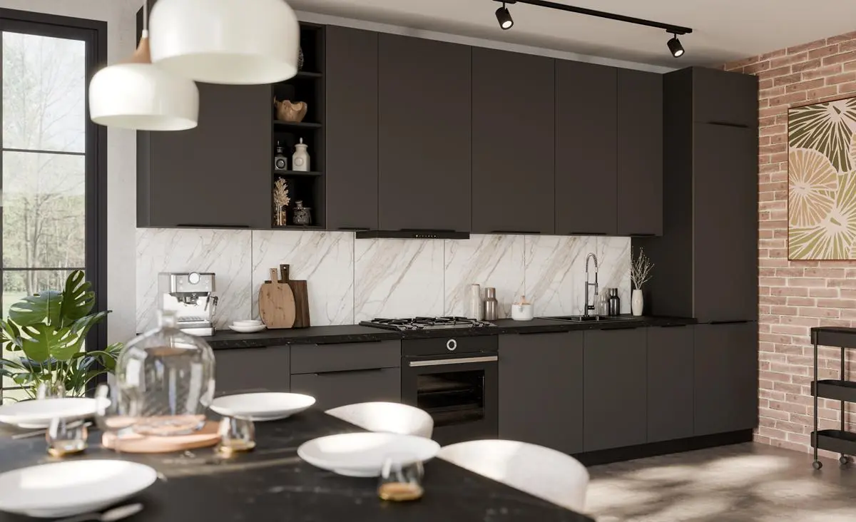 Wybierz ARIANA GRAFIT /CZARNY i stwórz kuchnię o wyrazistym, eleganckim charakterze, która łączy nowoczesny design z wysoką funkcjonalnością.