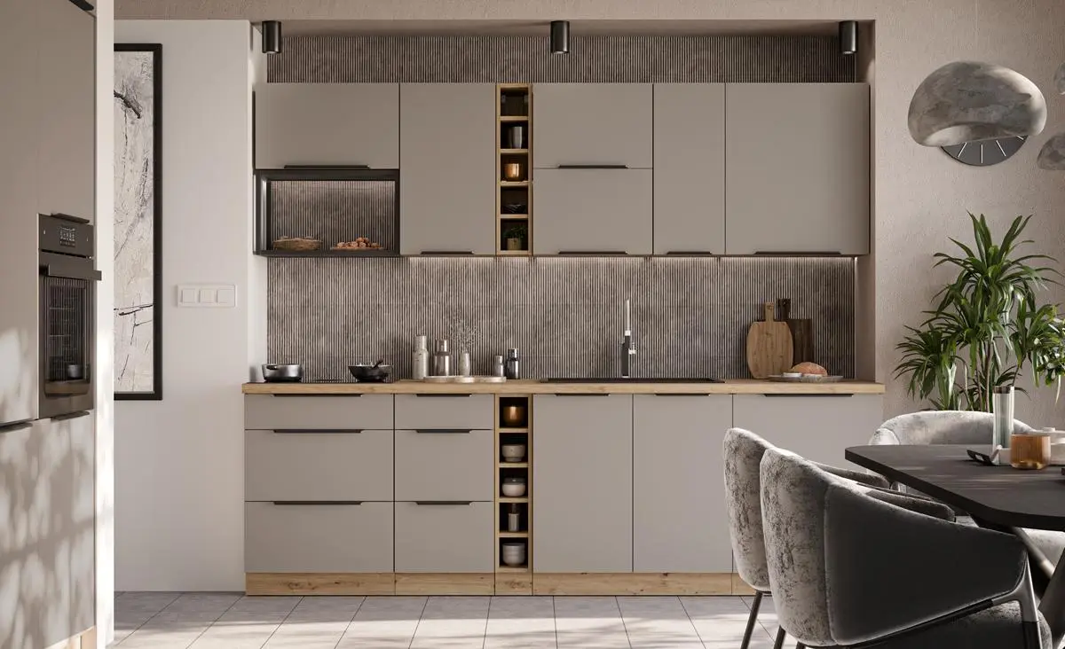 Wybierz ARIANA SANDGRAU/ARTISAN i stwórz kuchnię, która łączy nowoczesny design, naturalne wykończenie oraz wysoką funkcjonalność.