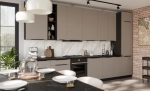 ARIANA SANDGRAU/CZARNY to propozycja dla miłośników nowoczesnych, minimalistycznych wnętrz. Jednolita czarna zabudowa nadaje kuchni elegancki, wyrazisty charakter i doskonale komponuje się z jasnym blatem, drewnianą strukturą lub betonowymi akcentami.