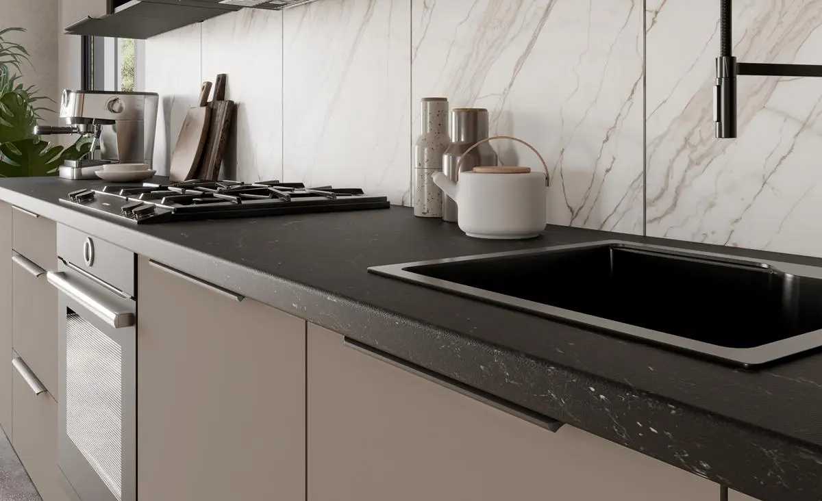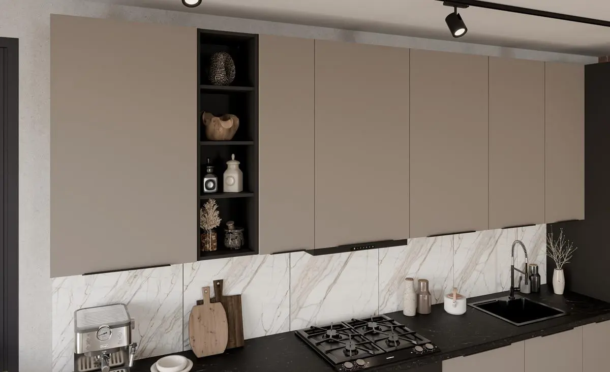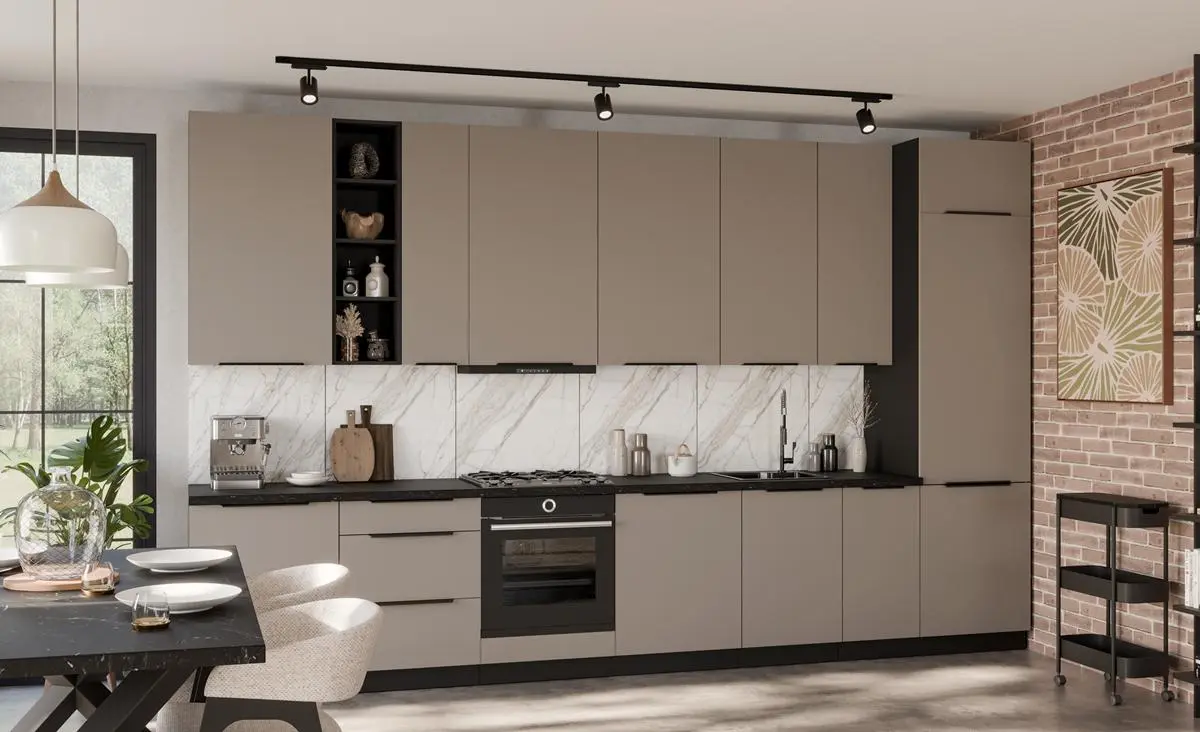 Wybierz ARIANA SANDGRAU /CZARNY i stwórz kuchnię o wyrazistym, eleganckim charakterze, która łączy nowoczesny design z wysoką funkcjonalnością.
