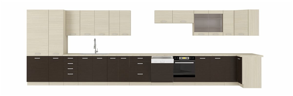 Zestaw mebli kuchennych HARMONIA – legno ciemne, 320 cm
