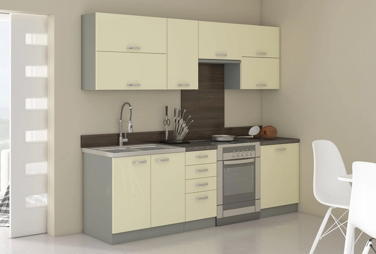 Zestaw mebli kuchennych IGA KARMEN – kremowy połysk / szary korpus (240 cm)
