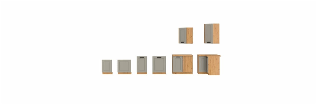 Zestaw mebli kuchennych LUNEA – jasny szary / dąb artisan (120x230 cm)