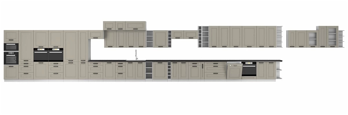 Elegancja w funkcjonalnym wydaniu! Zestaw mebli kuchennych LUNEA wyróżnia się frontami w jasnym szarym macie oraz korpusami w białym macie, co nadaje kuchni nowoczesny i minimalistyczny charakter. Polski produkt stworzony z myślą o trwałości, wygodzie i estetyce, idealnie sprawdzi się w dużych przestrzeniach kuchennych.