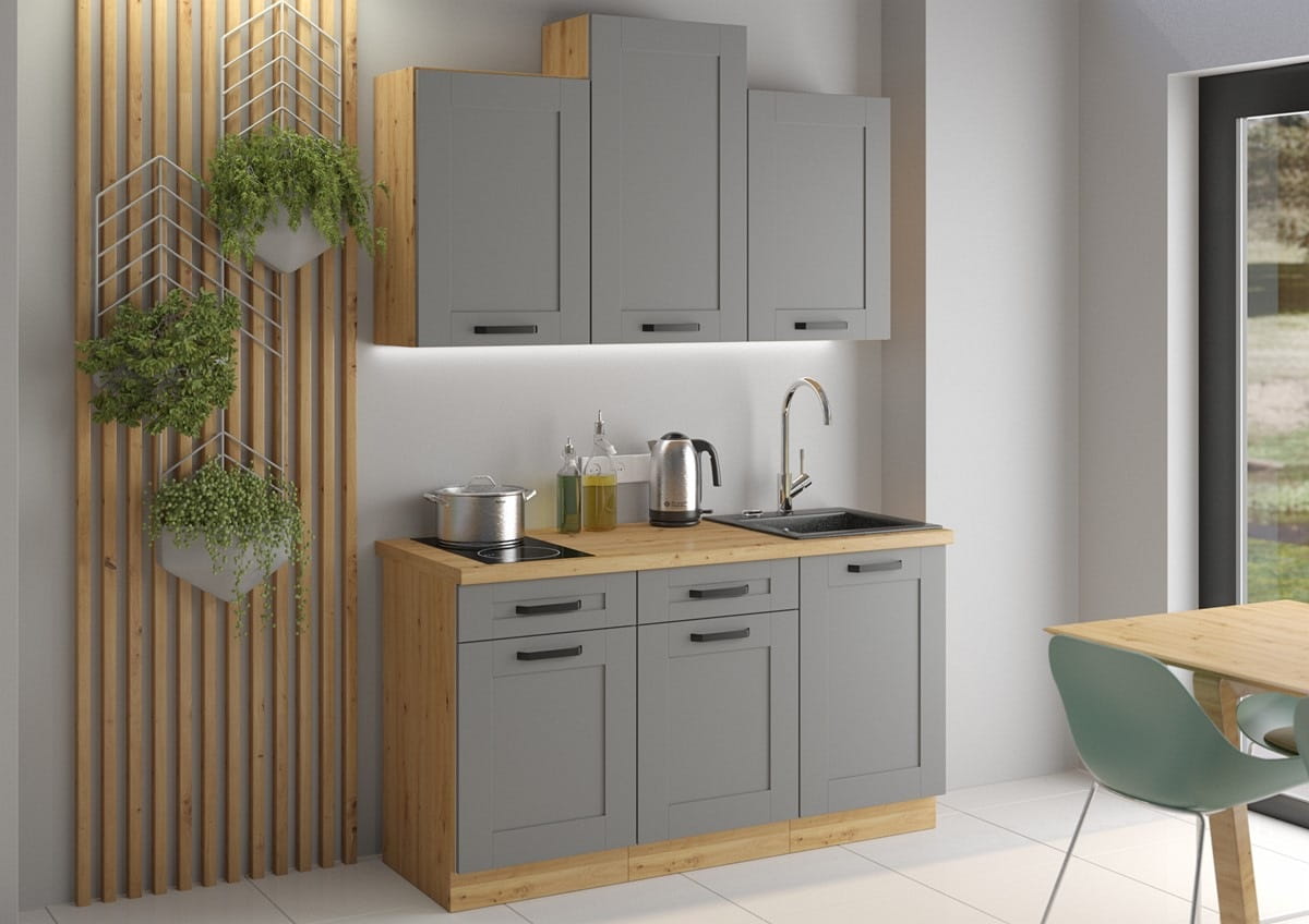 Zestaw mebli kuchennych LUNEA – ciemny szary / dąb artisan (150 cm)