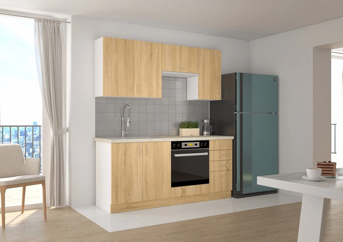 Zestaw mebli kuchennych SANSA – dąb sonoma / biały (180 cm)