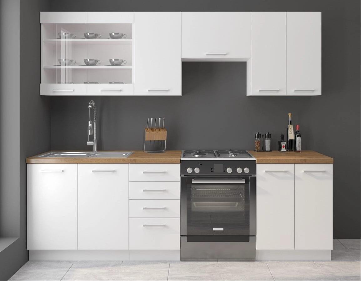 Zestaw mebli kuchennych WHITE MAT – biały mat (240 cm)
