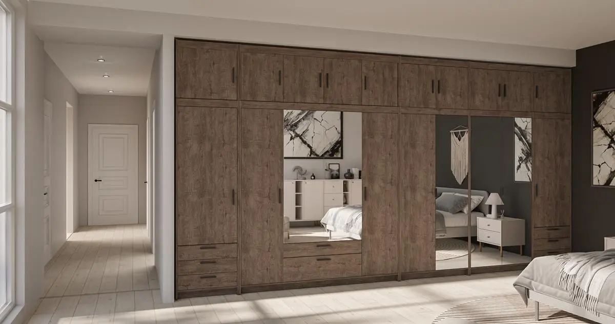 Szafa ELENA 4D DL04 z lustrem dąb lefkas to idealny wybór dla osób, które szukają dużej, pojemnej i eleganckiej szafy do sypialni w naturalnym dekorze drewna.