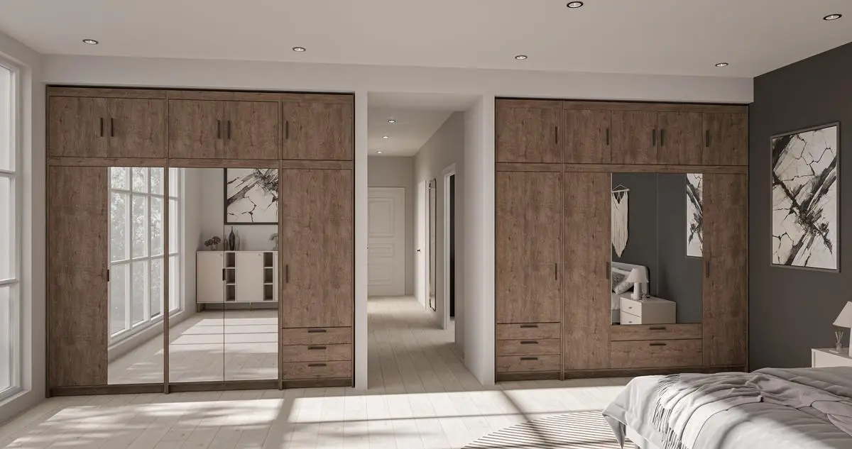 Kolor dąb lefkas świetnie komponuje się z dodatkami białymi, beżowymi, czarnymi i cashmere, które często wybierają klienci Meblolandia do sypialni.