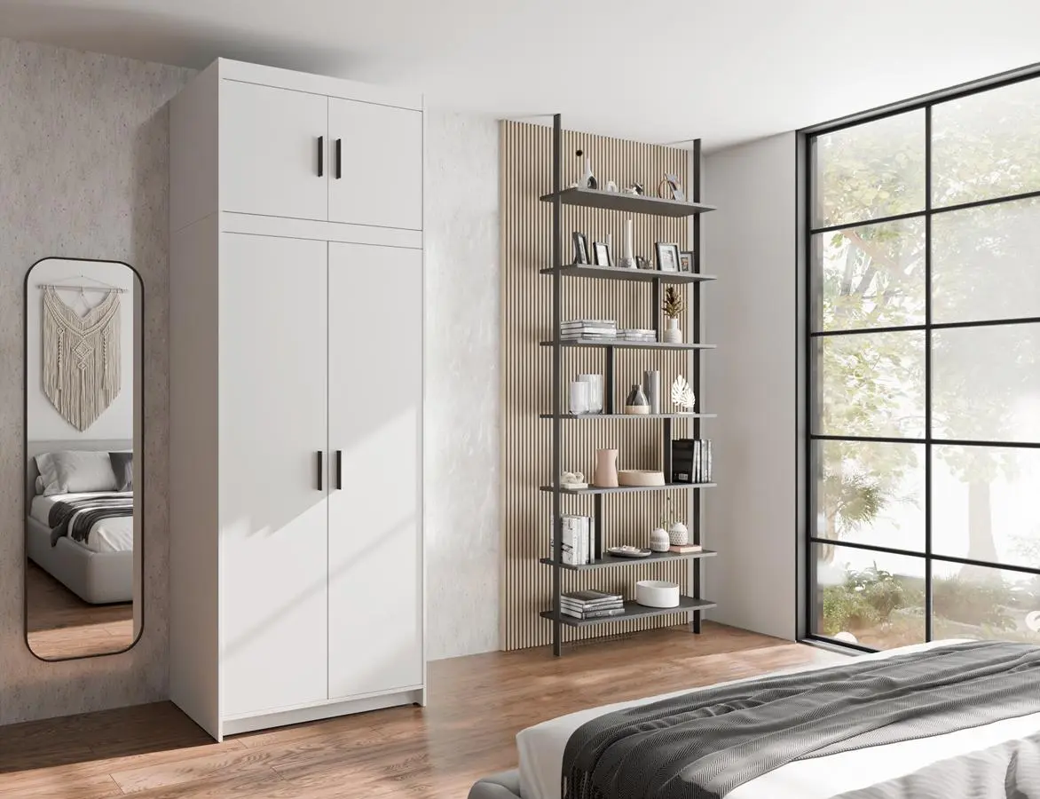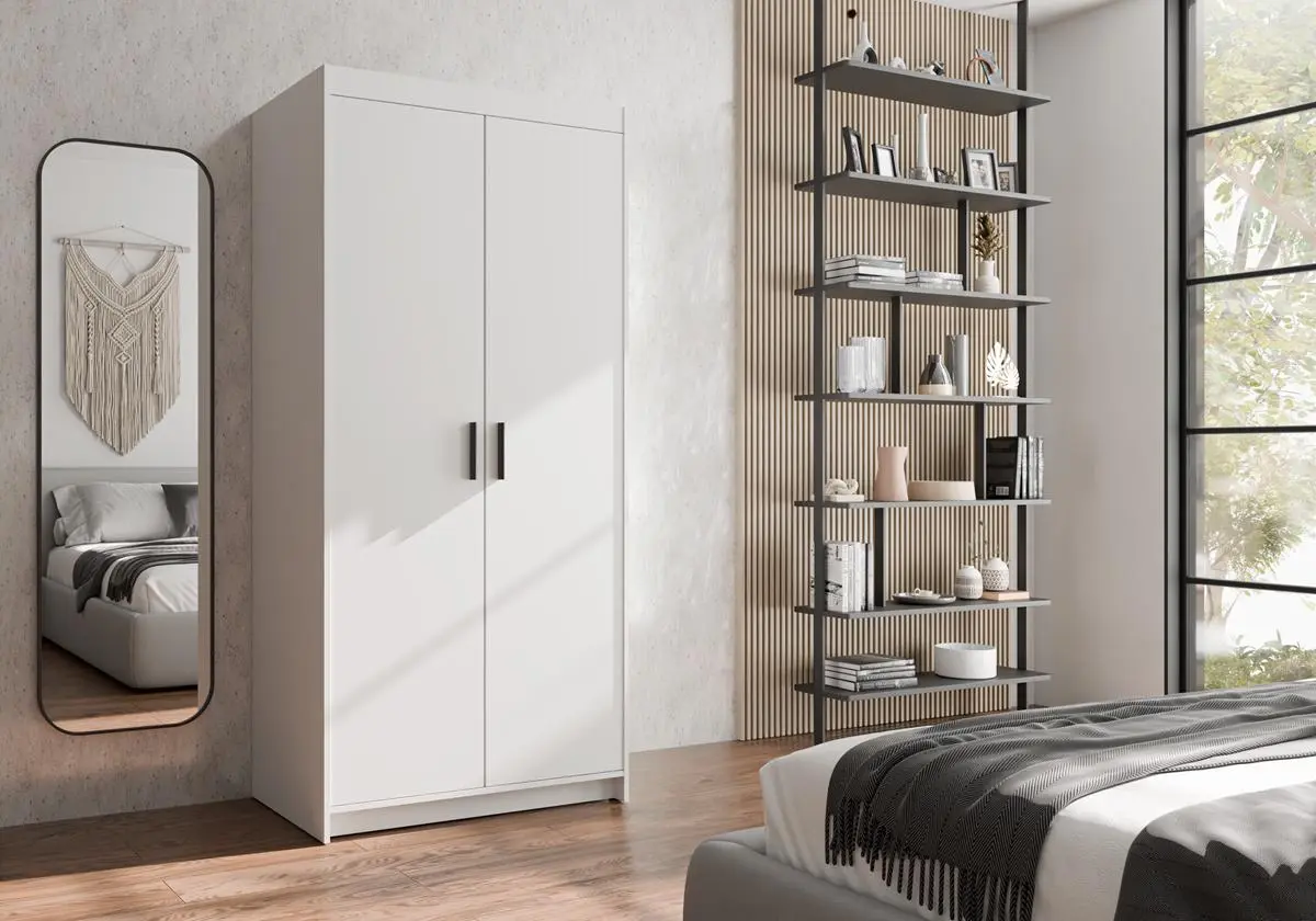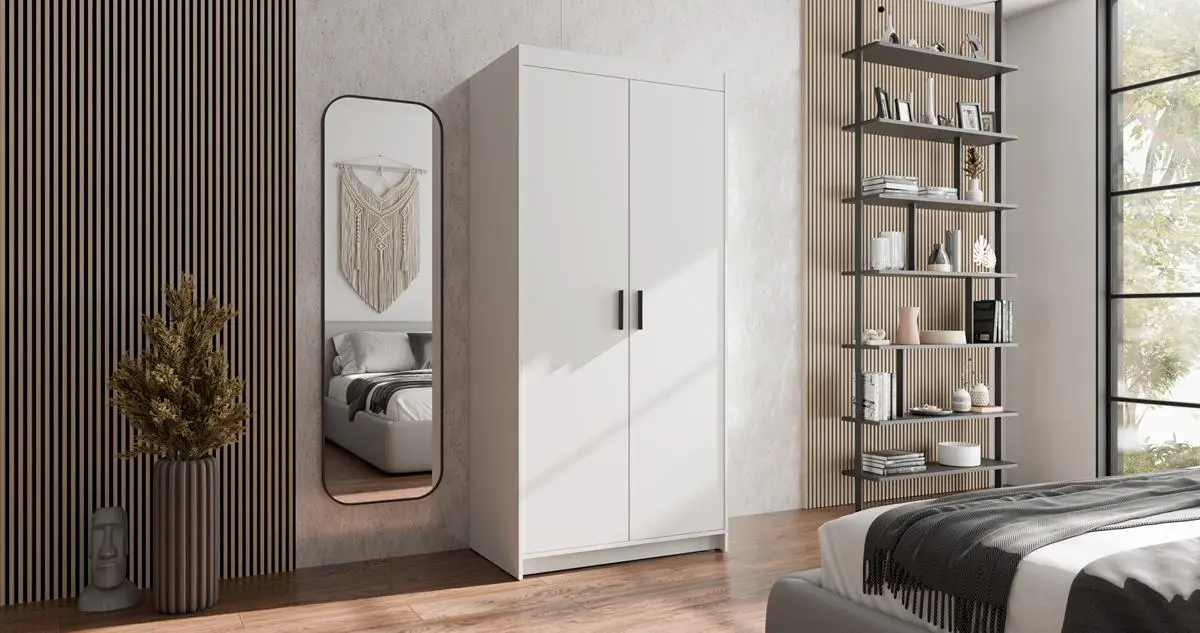 Praktyczna szafa ELENA WH2D bez lustra to uniwersalne rozwiązanie do sypialni, pokoju młodzieżowego lub przedpokoju. Drążek na ubrania i pojemne półki pomagają utrzymać porządek w garderobie, a biały kolor łatwo dopasować do różnych aranżacji.