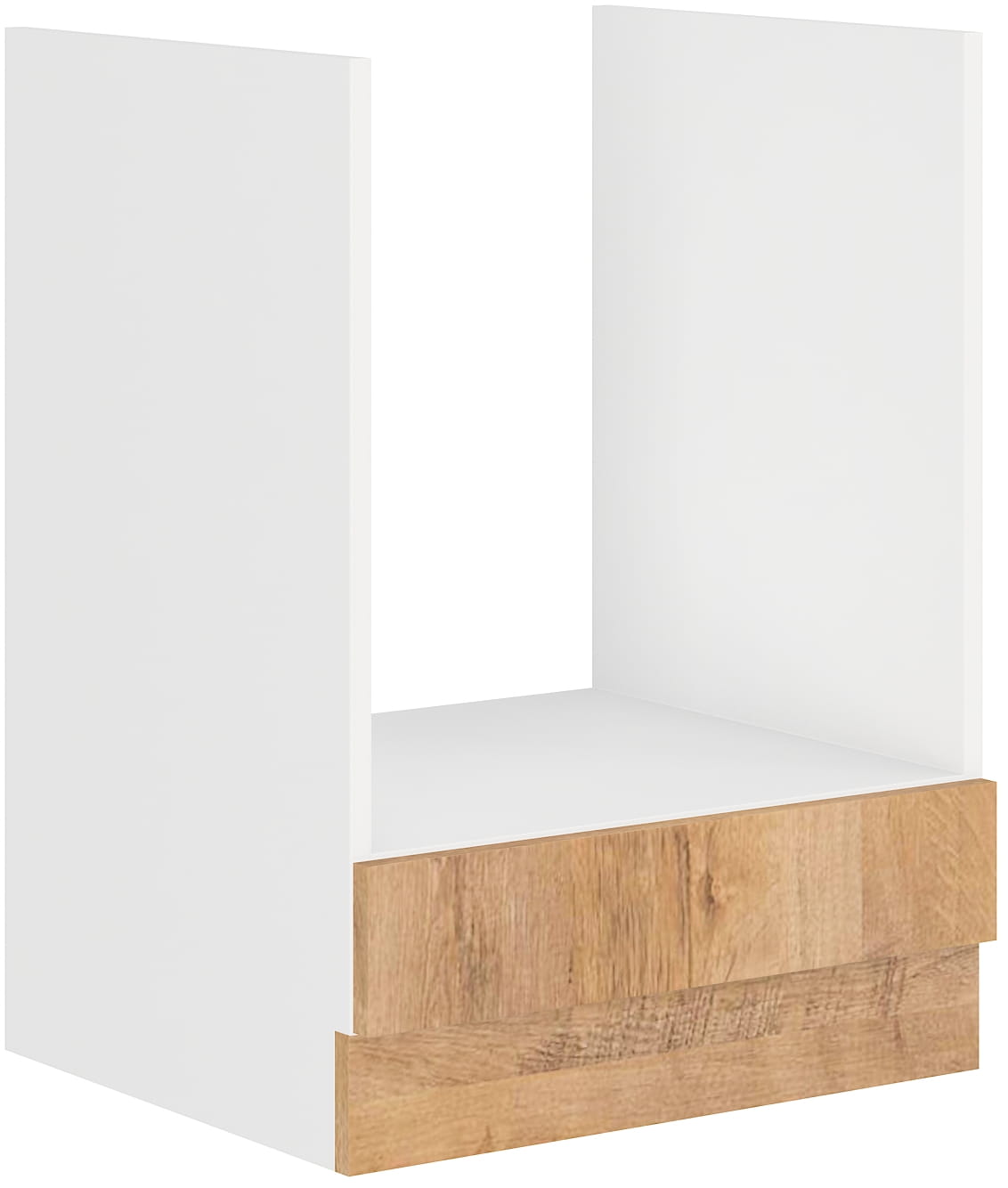 Szafka dolna do zabudowy piekarnika 60 D-GAZ BB Dąb Lefkas SANSA LEFKAS – szafka z frontem zaślepką i białym korpusem
