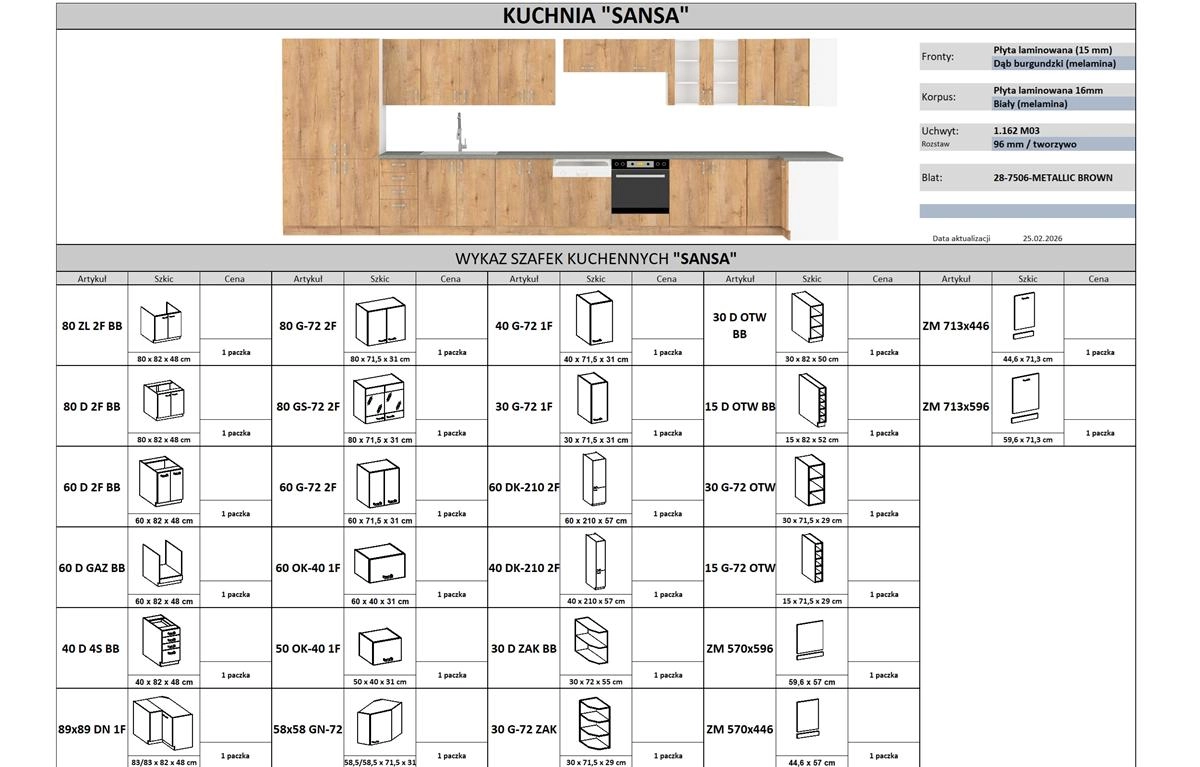 Wykaz wszystkich dostępnych szafek kolekcji SANSA SONOMA