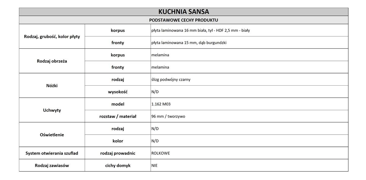 Kompatybilna z systemem mebli kuchennych SANSA SONOMA